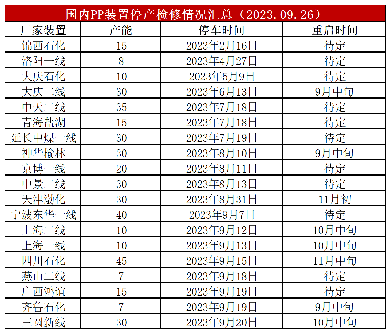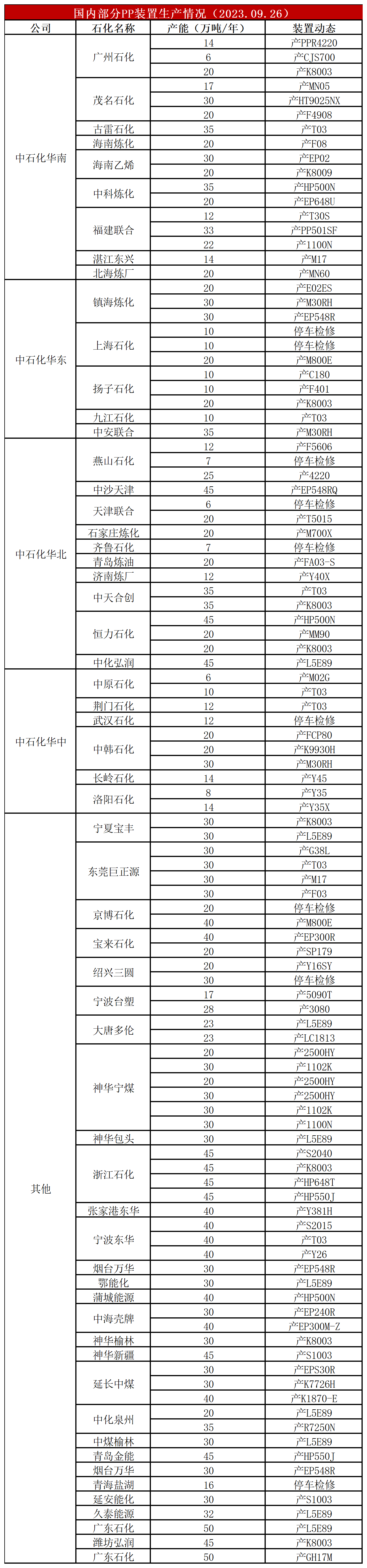 简评:周初宝来石化、联泓新材等检修装置重启,PP开工率继续提高,目前已经提升至90%附近,较上周提高2%,较上月同期高3%,较去年同期高2%。目前PP检修装置有限,开工率整体较前期有所提高,且宝丰、金发等新装置陆续投产,供应压力整体增加明显。