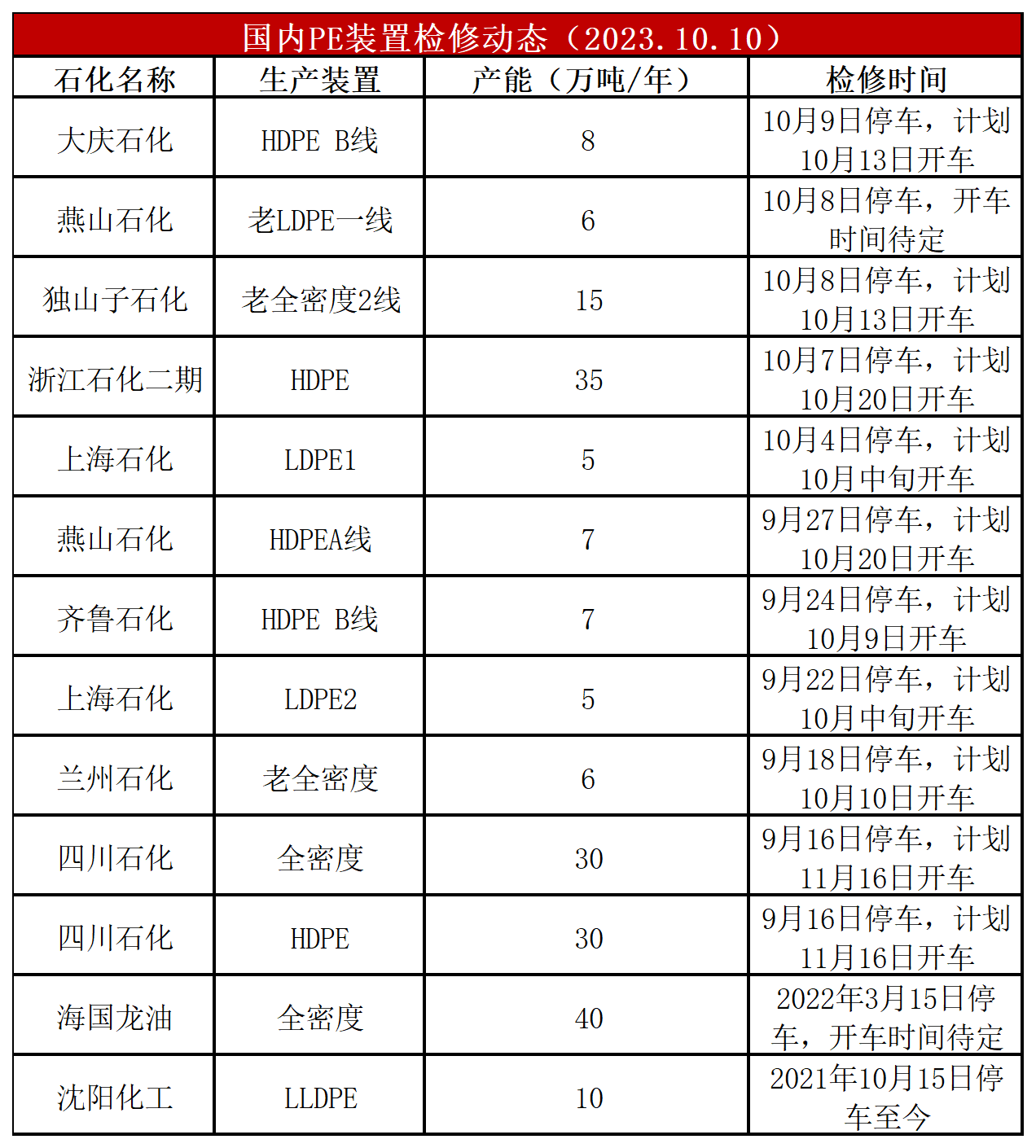 简评:PE装置大庆石化HDPE停车,开工负荷维持92%左右,比上周+2%,较去年同期-2%。PE装置齐鲁石化HDPE、上海石化LDPE计划开车,预计PE开工负荷小幅上涨。