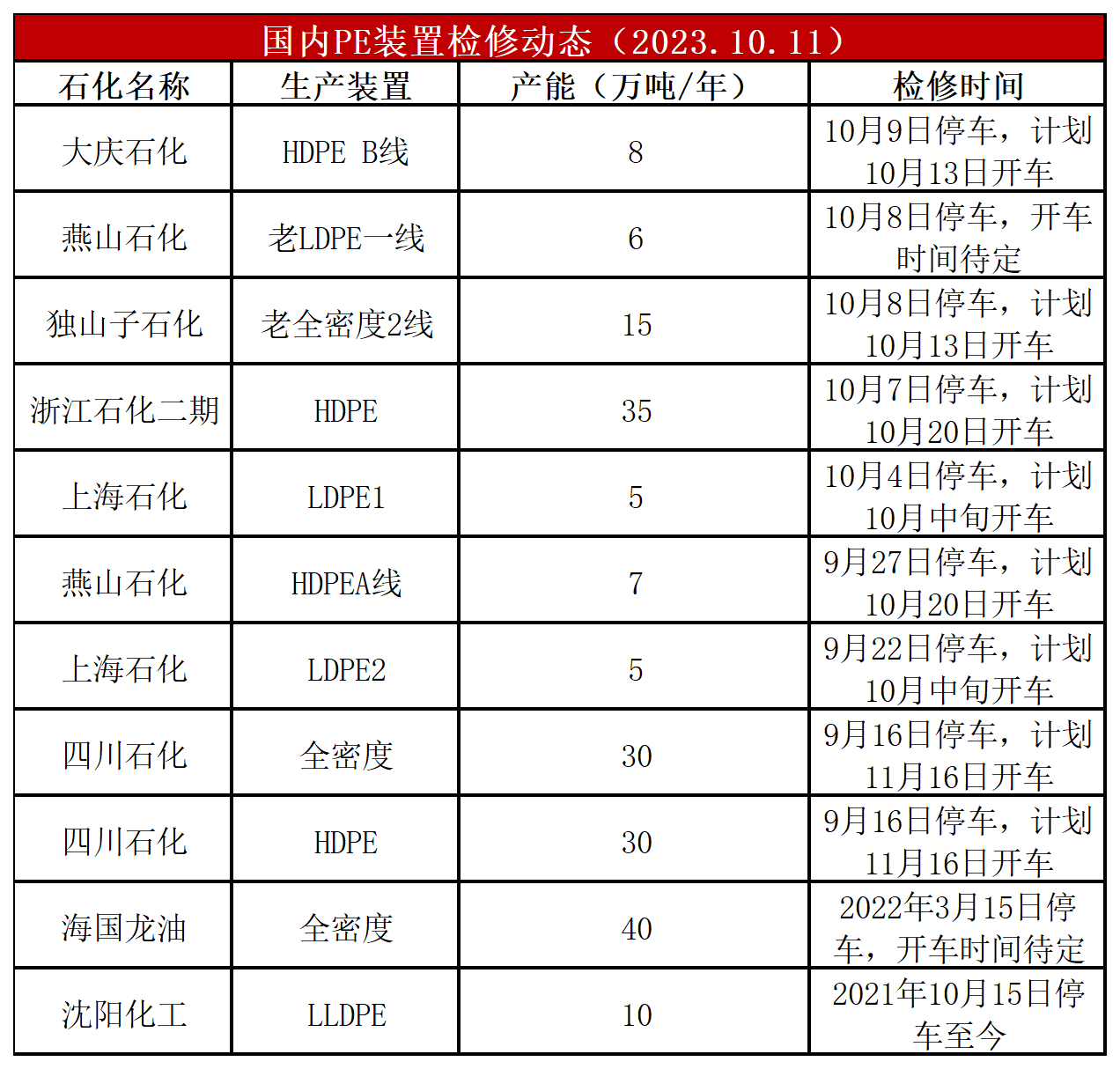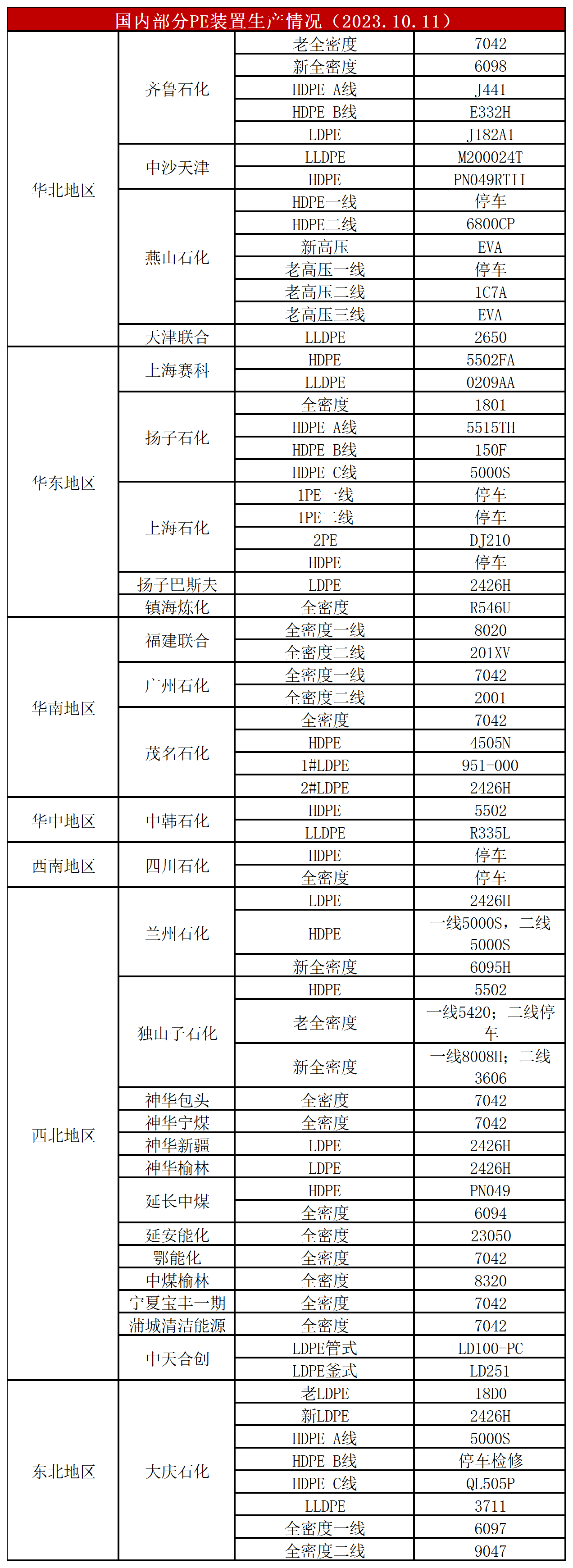 简评:PE装置兰州石化全密度、齐鲁石化HDPE开车,开工负荷维持92%左右,比上周-2%,较去年同期-1%。PE装置上海石化LDPE、独山子石化全密度、大庆石化HDPE计划开车,预计PE开工负荷小幅上涨。
