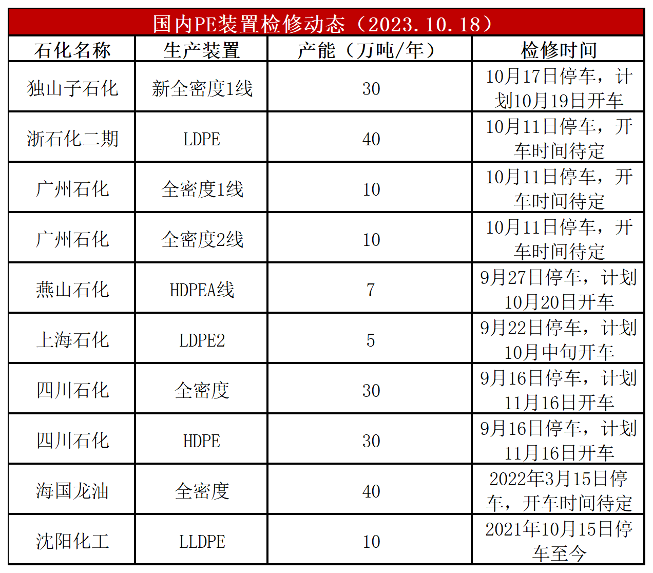 简评:PE装置兰州石化全密度开车,独山子石化新全密度停车,开工负荷维持92%左右,比上周-1%,较去年同期-1%。PE装置上海石化LDPE计划开车,壳牌计划停车大修,预计PE开工负荷小幅调整。