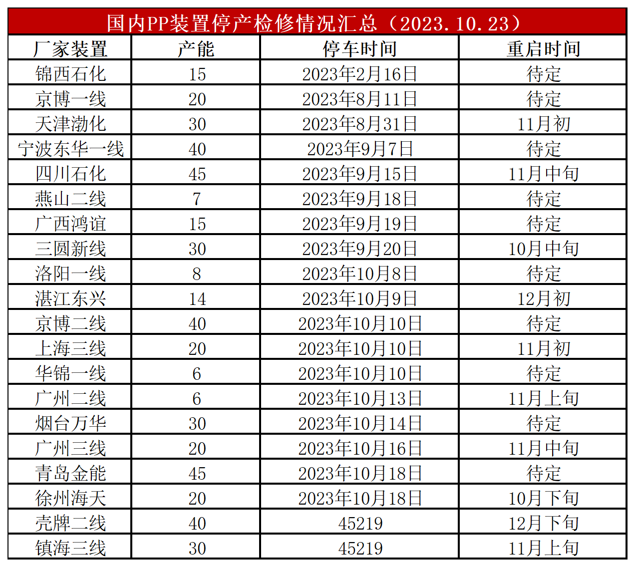 简评:周初PP装置暂无最新变动,开工率维持在87%附近。目前PP开工率虽然下降但绝对值偏高,宁波金发、宁夏宝丰等装置也逐渐正常生产,供应压力逐渐增加,不过PDH亏损背景下能否正常量产仍有待观察。