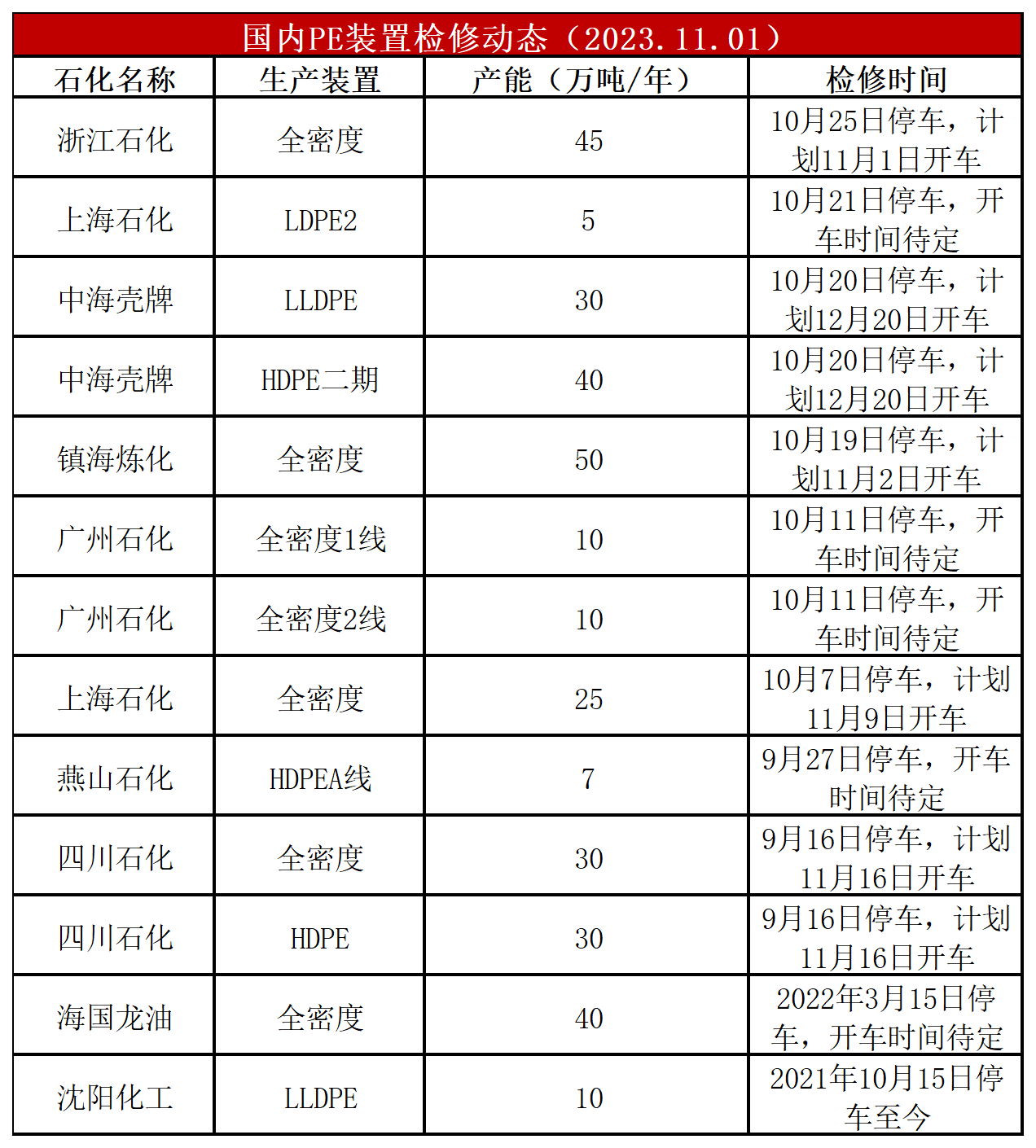 简评:PE装置燕山石化LDPE、浙石化二期LDPE开车,开工负荷上涨至90%左右,比上周+3%,较去年同期-3%。PE装置镇海炼化全密度计划开车,预计PE开工负荷小幅上涨。