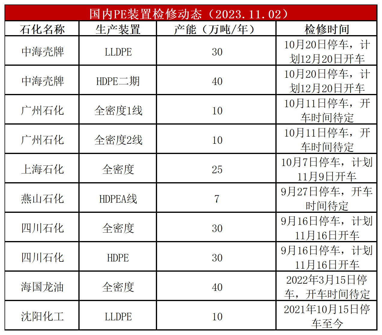 简评:PE装置上海石化LDPE、镇海炼化全密度开车,开工负荷上涨至92%左右,比上周+7%,较去年同期+0%。PE装置暂无计划开车和停车装置,预计PE开工负荷变化不大。