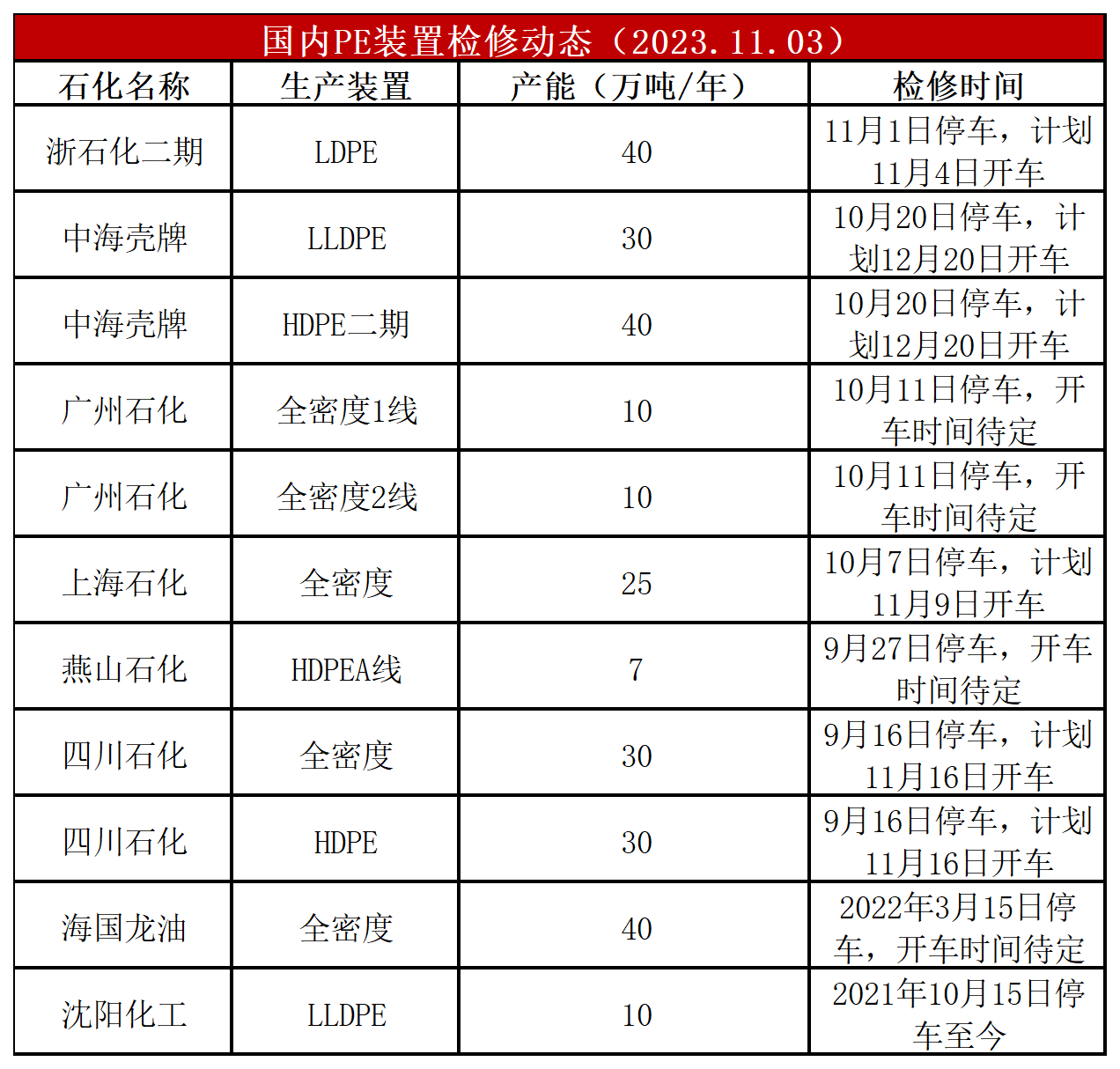 简评:PE装置浙石化二期LDPE停车,开工负荷下降至91%左右,比上周+6%,较去年同期-1%。PE装置浙石化二期LDPE计划开车,暂无计划停车装置,预计PE开工负荷变化不大。
