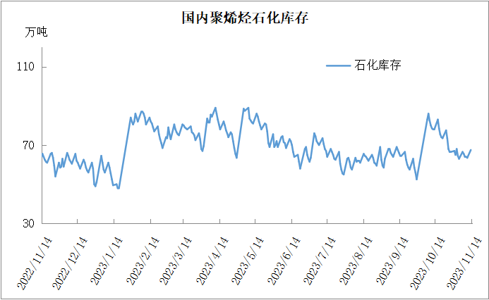 分析:周二石化库存67.5万吨,与昨日持平,较去年同期高3.5万吨。近期石化去库速度由快变慢,前期快速去库得益于金九银十旺季刚需以及检修装置增多,但是金九银十旺季结束需求转弱,近期聚烯烃开工率也有所反弹,去库速度明显放缓,但是库存压力尚未体现。
