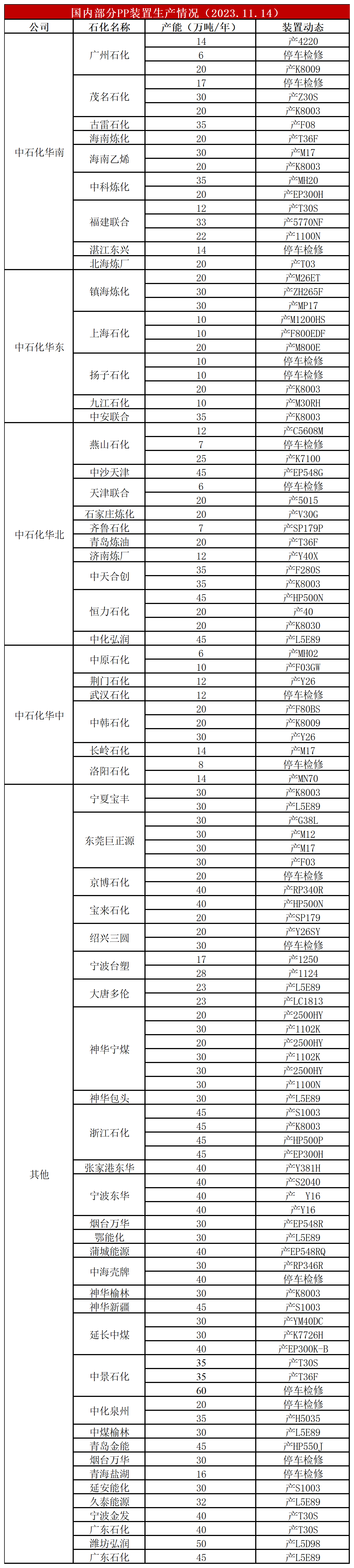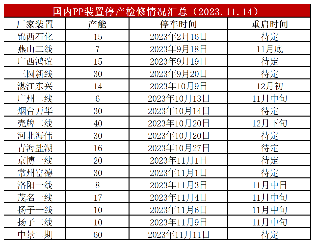 简评:中化泉州、华锦石化重启,中景三线停车,二者抵消后PP开工率变化不大,依然维持在86%附近,不过本周有多套检修装置有重启计划,预计开工率小幅反弹,检修利好较前期有所减弱。