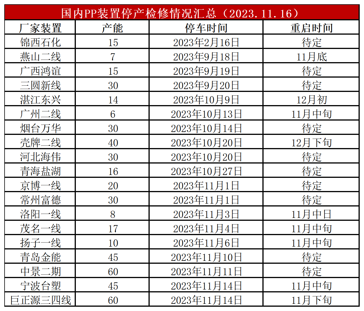 简评:近期PP计划外检修增多,但是检修时间较短,PP开工率降暂时至84%附近;本周有多套检修装置有重启计划,预计后期开工率小幅反弹,检修利好较前期有所减弱。