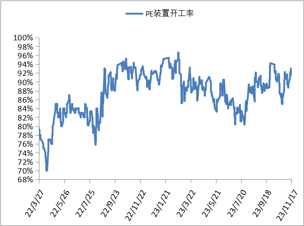 本周PE装置按计划开车较多,意外停车维持较少,开工负荷周末上涨到92%左右,比上周+2%,较去年同期+2%。PE装置上海石化全密度和LDPE、兰州石化全密度、独山子石化信全密度计划开车,预计PE开工负荷小幅上涨为主。