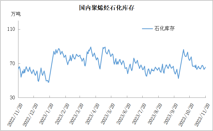 分析:周一石化库存65.5万吨,较上周末增加2.5万吨,与去年同期持平。进入11月份以来,石化去库速度明显放缓,基本维持周内去库5万吨以内水平。前期石化企业检修较多,尤其是亏损背景下计划外检修增多,但是随着油价整体下落,利润明显改善,检修力度有所下降,需求也整体偏弱,预计近期石化维持缓慢去库。