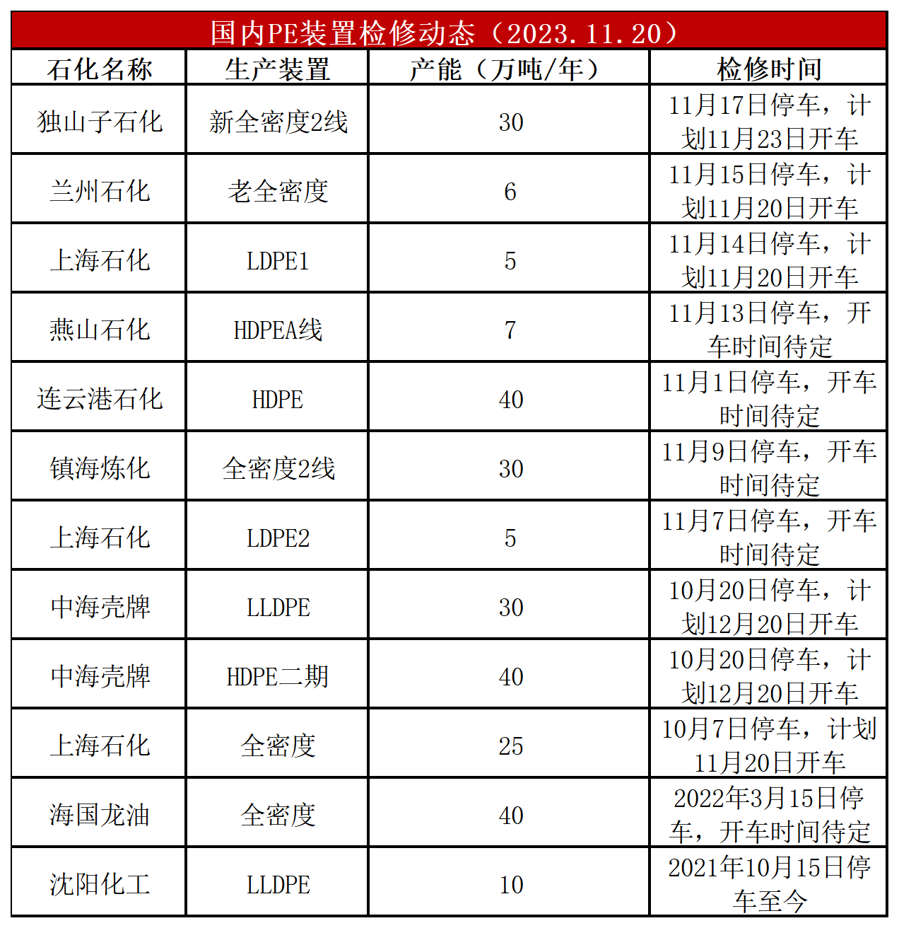 简评:PE装置独山子新全密度停车,开工负荷下降至92%左右,比上周+2%,较去年同期+2%。PE装置上海石化全密度和LDPE、兰州石化全密度、独山子石化信全密度计划开车,预计PE开工负荷小幅上涨为主。