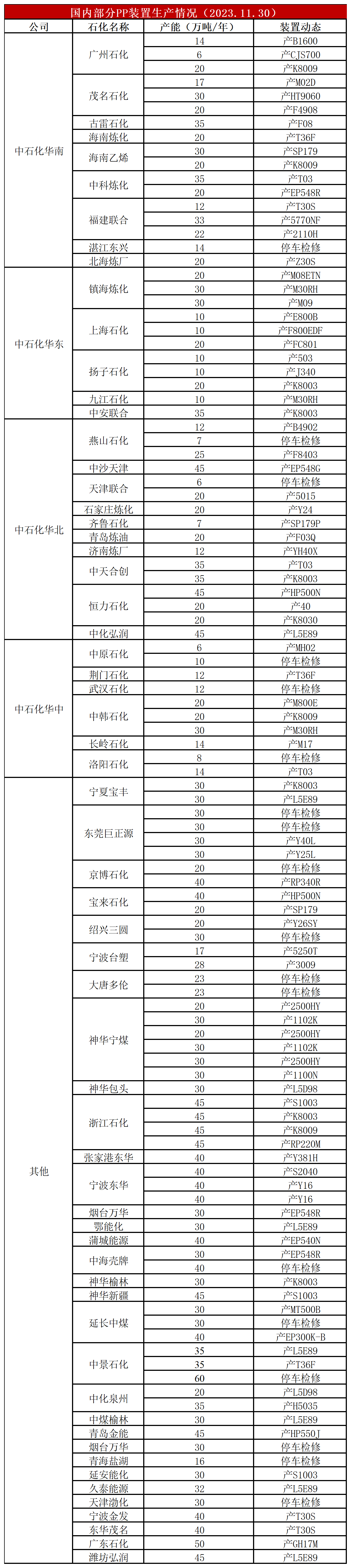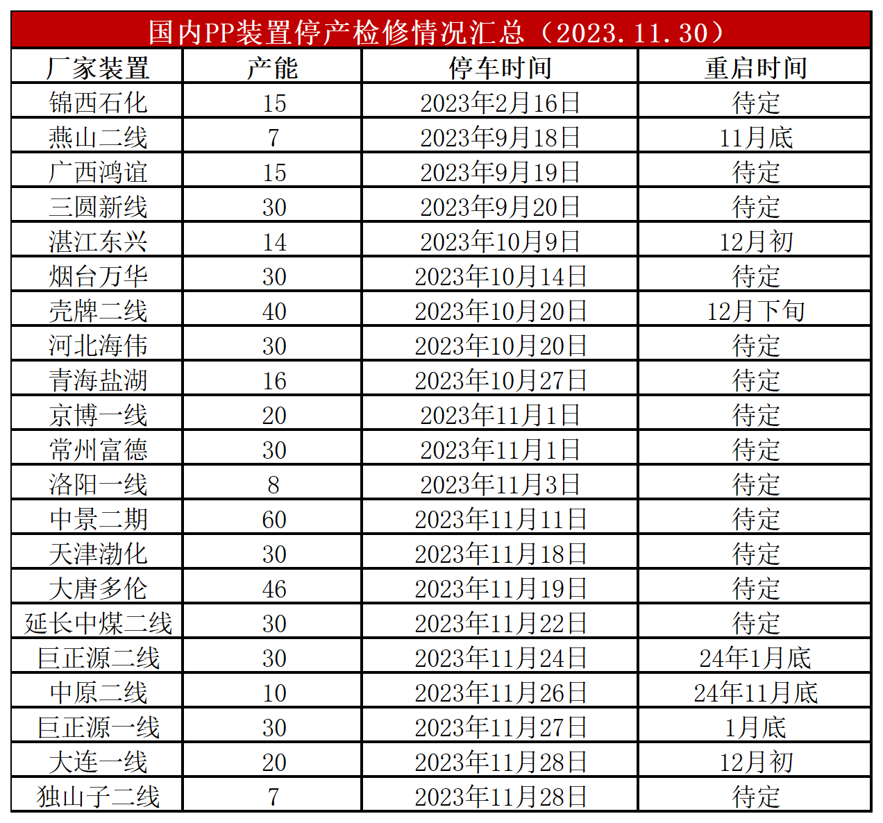 简评:广州二线重启,但是独山子二线及大连一线停车,PP开工率依然保存在85%以下,较上周下降2%,较上月同期低1%,较去年同期低4%。虽然PP部分新装置投产推迟,但9月份以来仍有宁夏宝丰、宁波金发等投产,不过扩能压力减弱,且考虑亏损背景下计划外检修增多,PP供应端压力暂时不大。