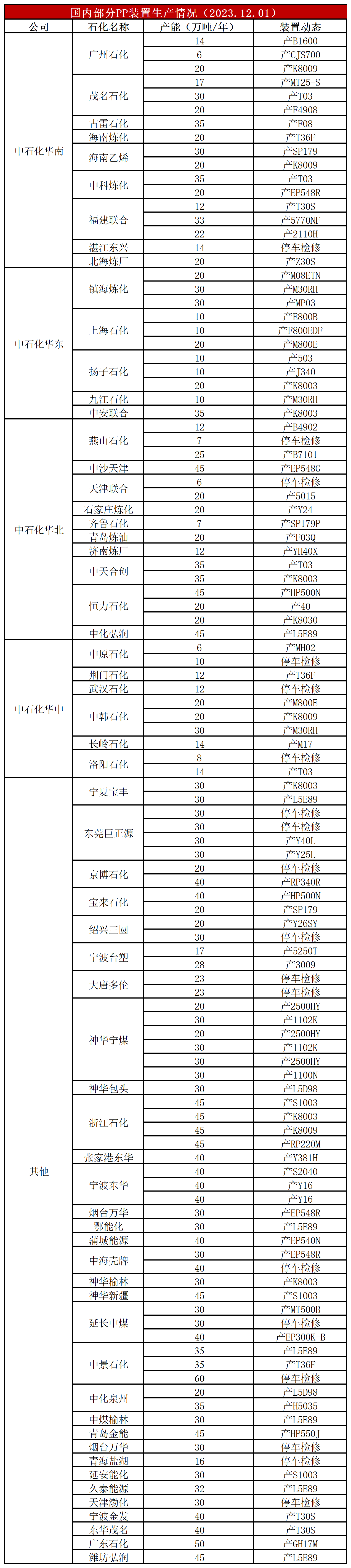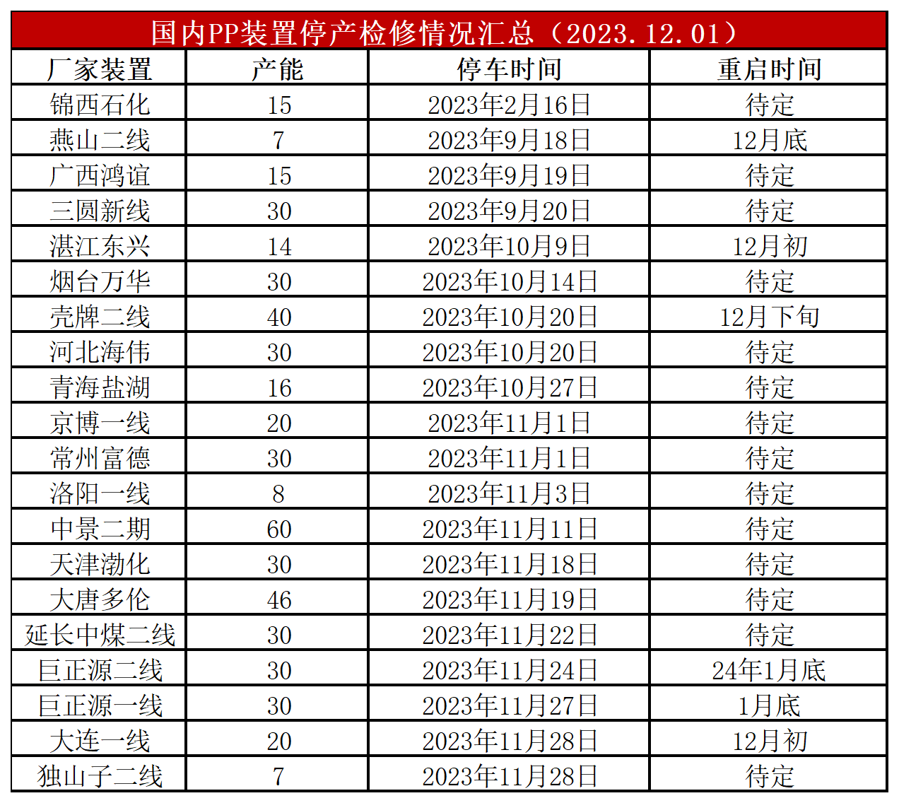 简评:本周计划外检修装置明显增多,PP开工率依然保存在85%以下,较上周下降2%,较上月同期低1%,较去年同期低4%。虽然PP部分新装置投产推迟,但9月份以来仍有宁夏宝丰、宁波金发等投产,不过扩能压力减弱,且考虑亏损背景下计划外检修增多,PP供应端压力暂时不大。