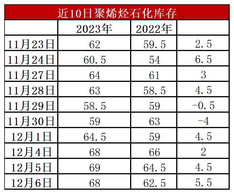 分析:周三石化库存68万吨,较昨天下降1万吨,较去年同期高5万吨左右。前期PP因为亏损,计划外检修较多,开工率一度降至85%以下,近期开工率有所反弹,供应端有所增加,而需求持续疲软,石化去库难度加大,甚至出现小幅垒库迹象,到目前为止本周石化尚未去库。