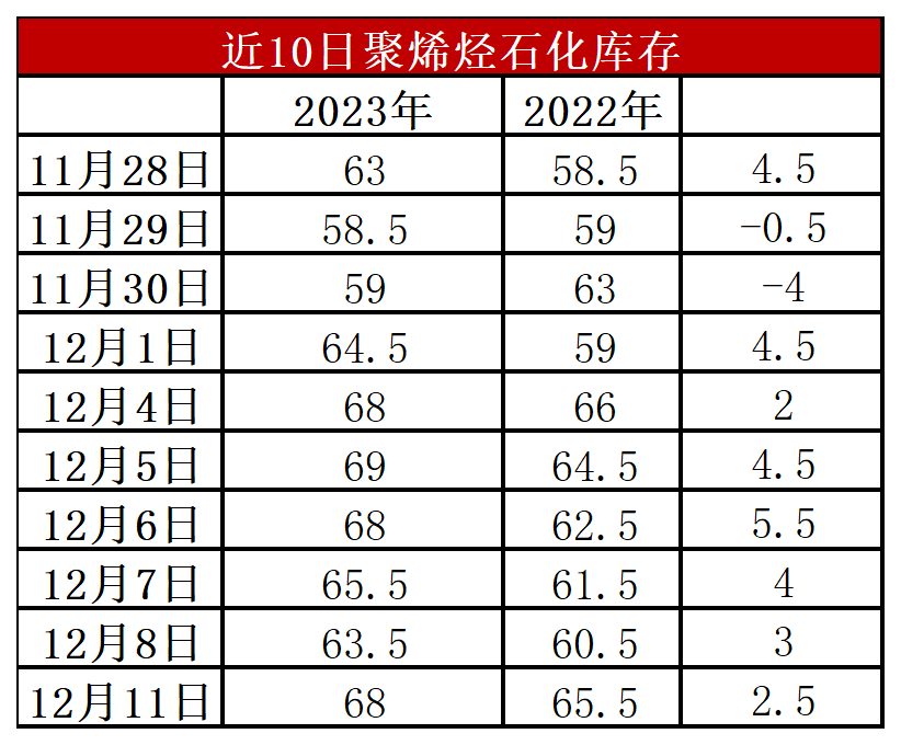 分析:周一石化库存68万吨,较上周末增加4.5万吨,较去年同期高2.5万吨。近期石化缓慢去库,基本维持周内去库5万吨左右水平。目前下游需求偏弱,需求旺季尚未启动,不过供应端压力也明显缓解,尤其是PP亏损背景下计划外检修大幅增加,压力明显缓解,虽然石化去库缓慢但库存压力不大。