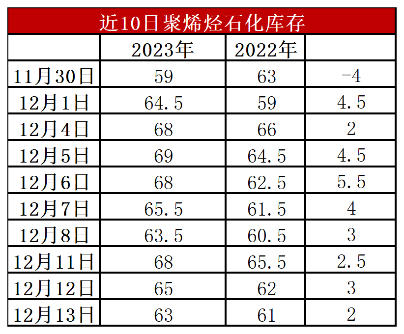 分析:周三石化库存63万吨,较昨天下降2吨,较去年同期高2万吨。近期石化恢复正常去库。目前下游需求偏弱,需求旺季尚未启动,不过供应端压力也明显缓解,尤其是PP亏损背景下计划外检修大幅增加,压力明显缓解,石化正常去库。