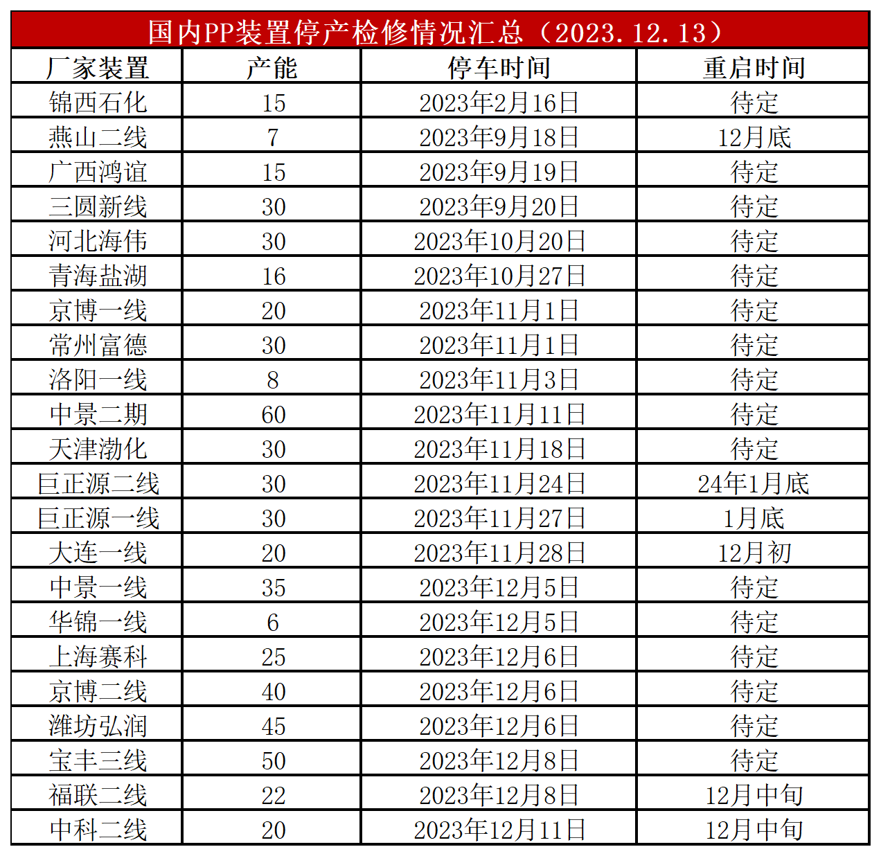 简评:PP装置情况暂稳,开工率维持83%附近,与上周持平,较上月同期低4%,较去年同期低5%,近期PP计划外检修再次增多,开工率下降明显,供应压力暂时缓解。