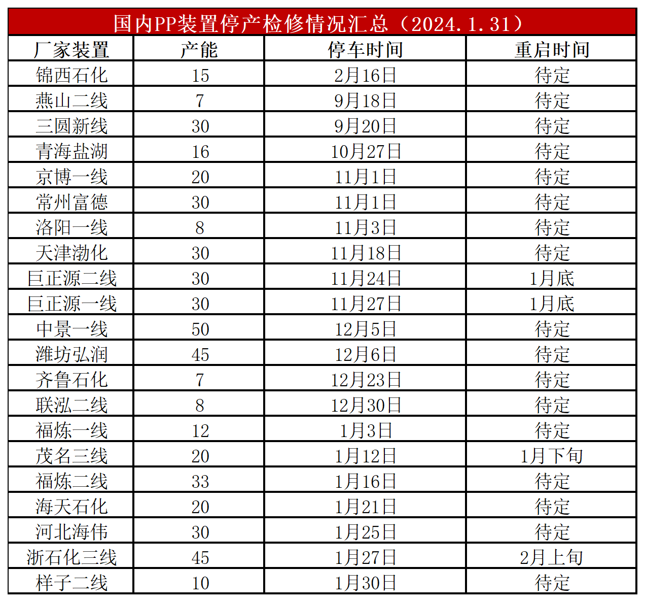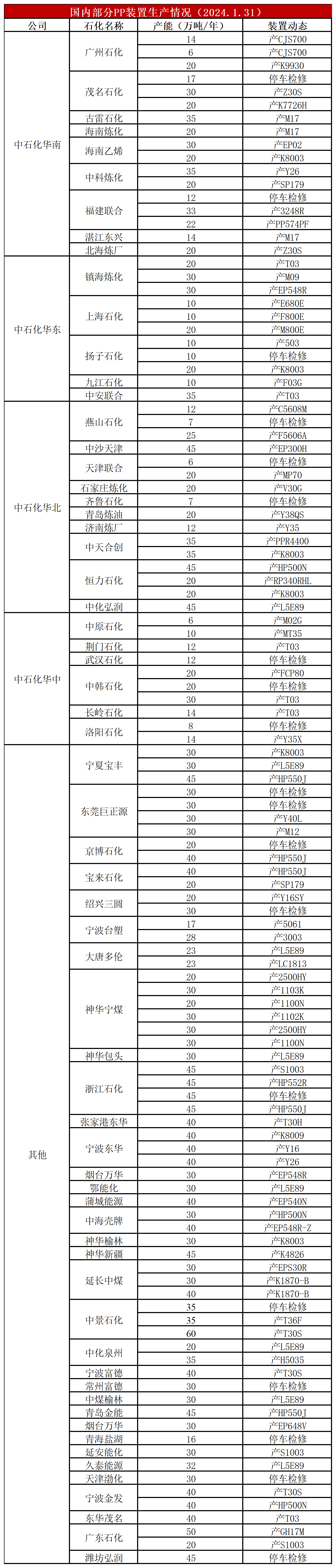 简评:浙江石化、扬子石化等个别装置停车检修,PP开工率降至85%,较上周下降1%,较上月同期高3%,较去年同期低3%。PP开工率整体持稳,长时间维持在85%附近,整体低于往年同期,计划外检修依然偏多,一定程度上缓解供应压力。