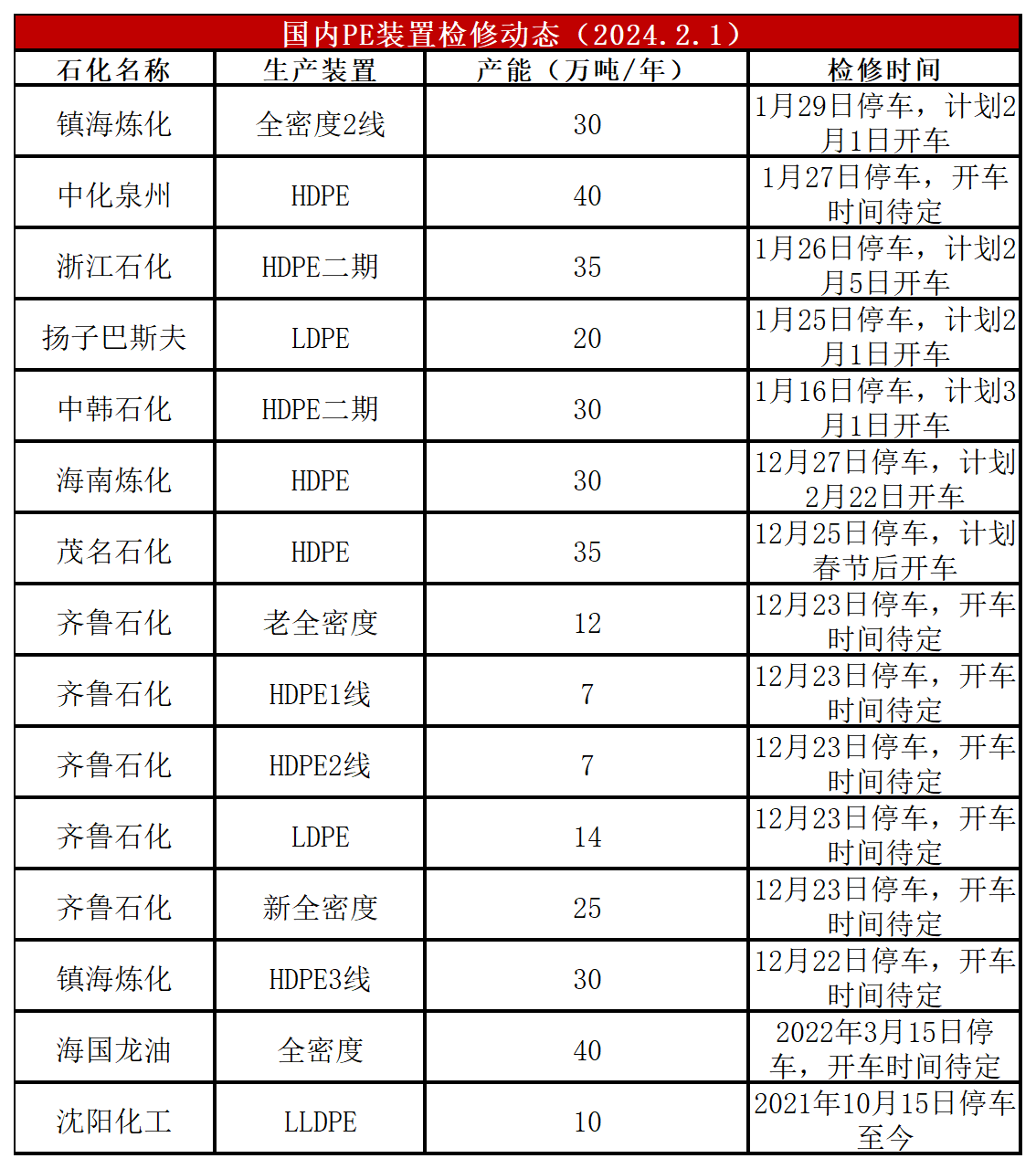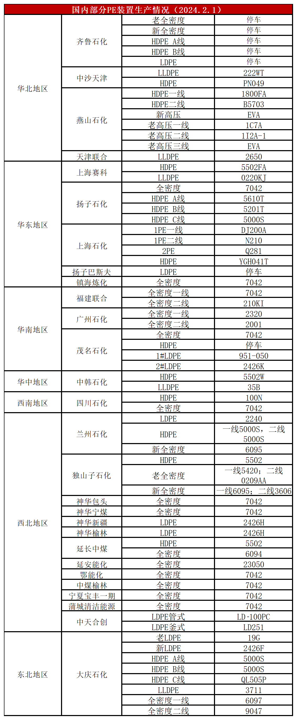 简评:PE装置燕山石化HDPE开车,镇海炼化全密度停车,开工复合维持88%左右,比上周-2%,较去年同期-6%。PE装置中韩石化HDPE、扬子巴斯夫LDPE、浙江石化HDPE、镇海炼化全密度计划开车,暂无计划停车装置,预计PE开工负荷小幅上涨。