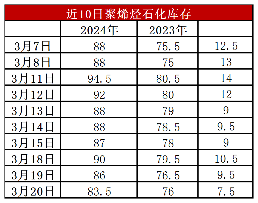 分析:周三石化库存83.5万吨,较昨天下降2.5万吨,较去年同期高7.5万吨。近期聚烯烃在期货带动下整体反弹明显,市场气氛好转,成交改善;供应端扩能压力暂未体现,集中检修季来临开工率有望逐渐下降,供应压力也有望缓解,近期去库有所提速。