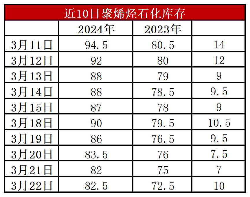 分析:周五石化库存82.5万吨,较昨天增加0.5万吨,较去年同期高10万吨。本周石化去库先快后慢,周五甚至出现垒库迹象,周内累计去库7.5万吨。近期石化检修明显增多,开工率大幅下降,供应压力缓解,且周中之前期货整体反弹,带动现货价格走高,成交好转,去库提速,不过临近周末市场出现松动,成交回落,去库放缓。