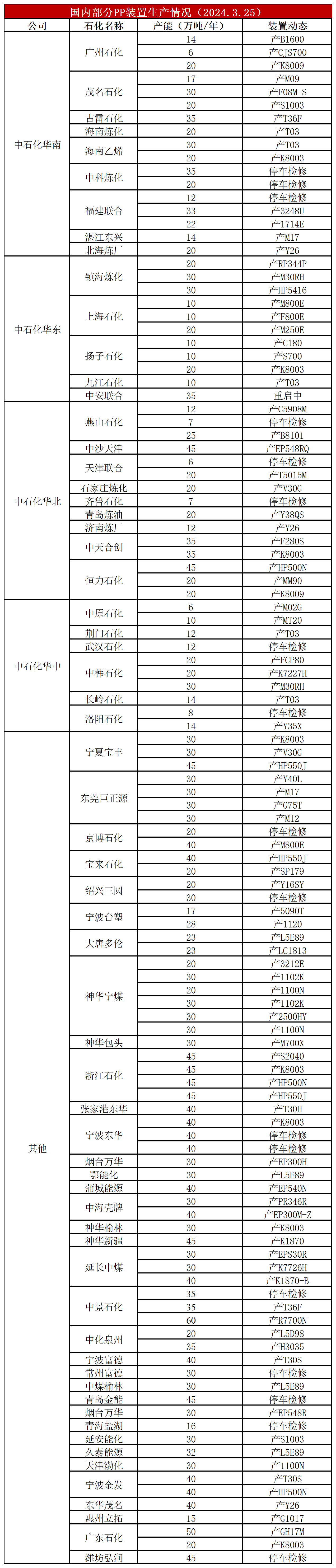 简评:PP集中检修开启,中科炼化、宁波东华等部分装置停车,PP开工率降至83%,周初开工率暂稳与上周末持平,较上月同期低3%,较去年同期低5%。虽然五一之前仍有2套装置有投产计划,但是PP检修季也已经来临,开工率有望下降,供应压力有望缓解。
