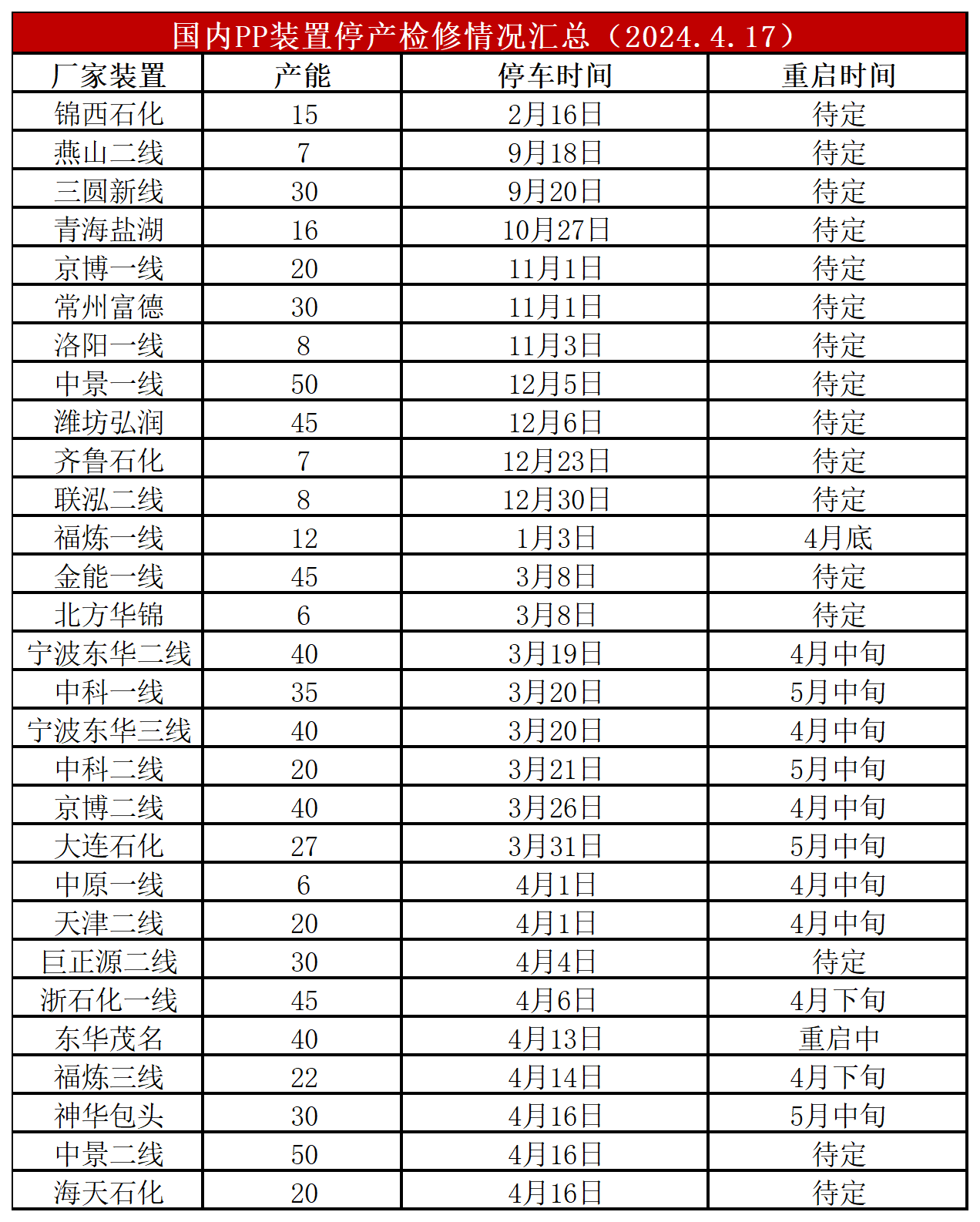 简评:神华包头、中景二线停车检修,但是东华茂名、中景三线重启,抵消后PP开工率暂稳,目前在82.5%附近,较上周末下降1.5%,较上月同期低3.5%,较去年同期低1%。后期检修装置依然较多,但是个别新装置也将面临投产,将抵消部分检修利好。