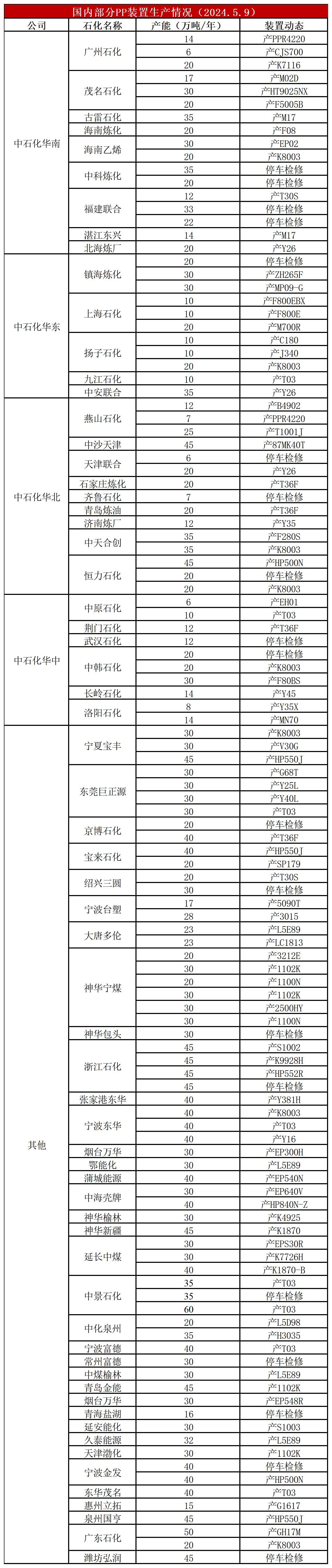 简评:近期PP装置个别调整,整体变化不大,开工率在85%附近,较上周提高1%,较上月同期高5%,较去年同期高2%。后期检修装置依然较多,但是检修力度难以继续加大,且个别新装置也将面临投产,将抵消部分检修利好。