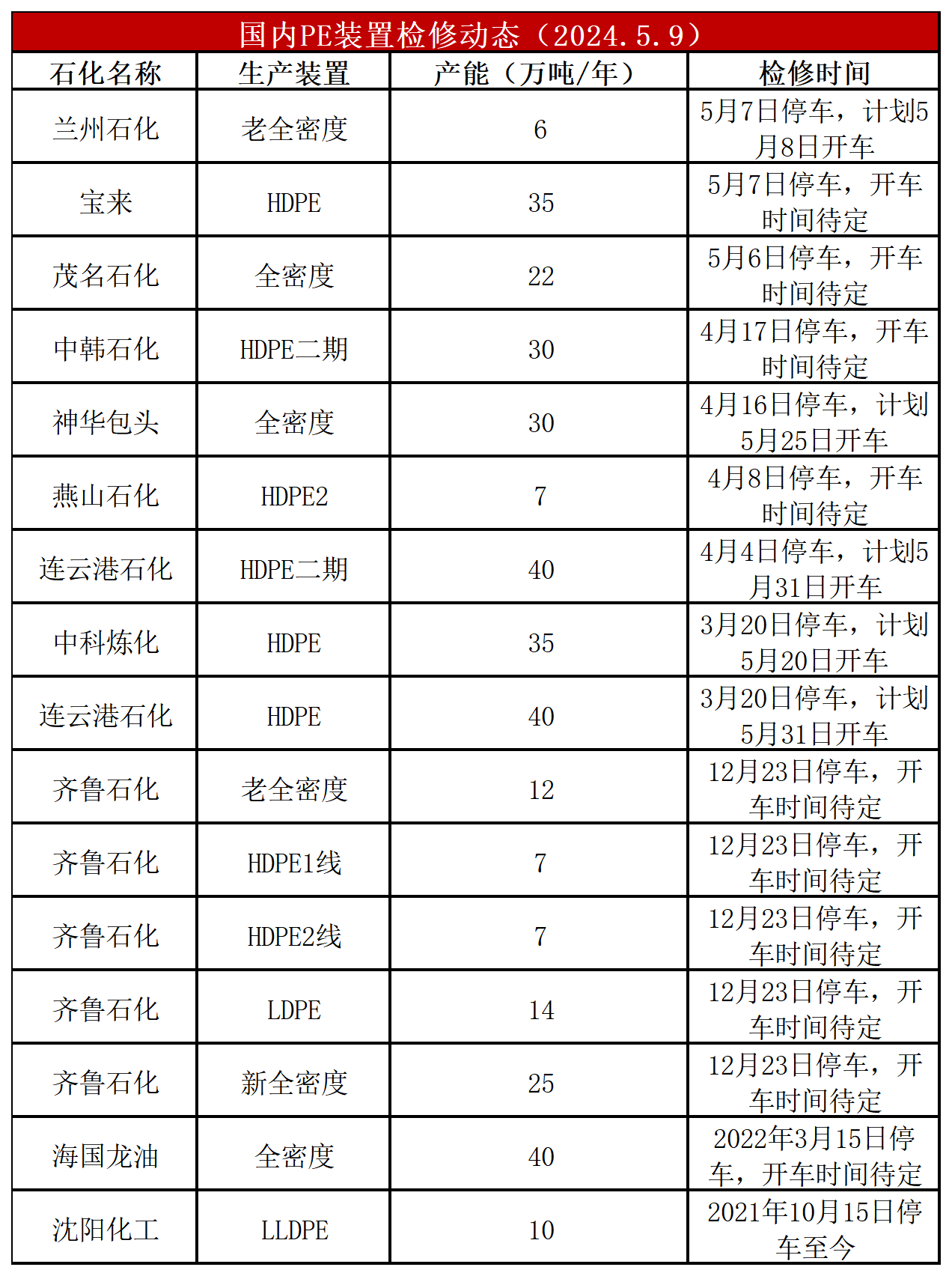 简评:PE装置万华化学HDPE、海南炼化HDPE开车,开工负荷维持上涨至88%左右,比上周+3%,较去年同期-2%。PE装置兰州石化老全密度计划开车,广东石化全密度、中韩石化LLDPE、蒲城清洁、独山子石化计划停车,PE开工负荷预计弱势调整。