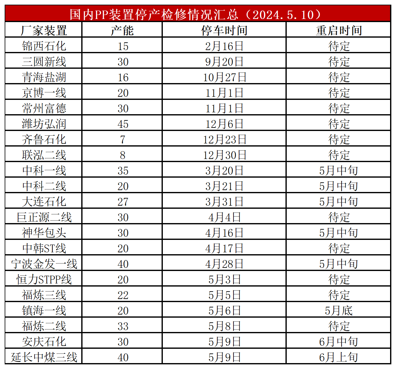 简评:中景石化、浙江石化部分装置重启,但是延长中煤、安庆石化部分装置停车,抵消后PP开工率变化不大,依然在85%附近,较上周提高1%,较上月同期高5%,较去年同期高2%。后期检修装置依然较多,但是检修力度难以继续加大,且个别新装置也将面临投产,将抵消部分检修利好。