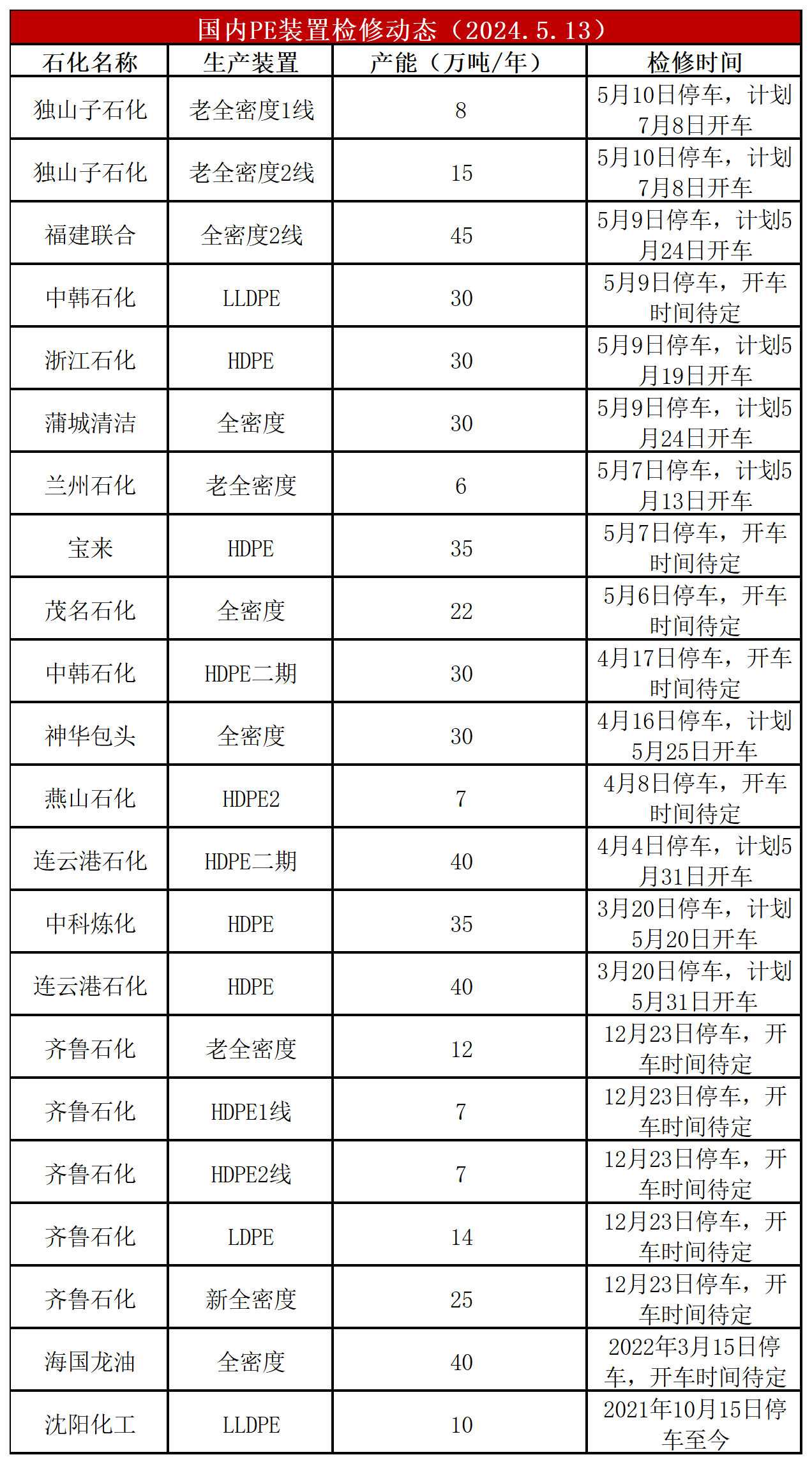 简评:PE装置独山子老全密度1线2线、福建联合全密度2线停车,开工负荷下跌至83%左右,比上周-2%,较去年同期-5%。PE装置兰州石化老全密度计划开车,广东石化全密度、独山子石化计划停车,PE开工负荷预计弱势调整。