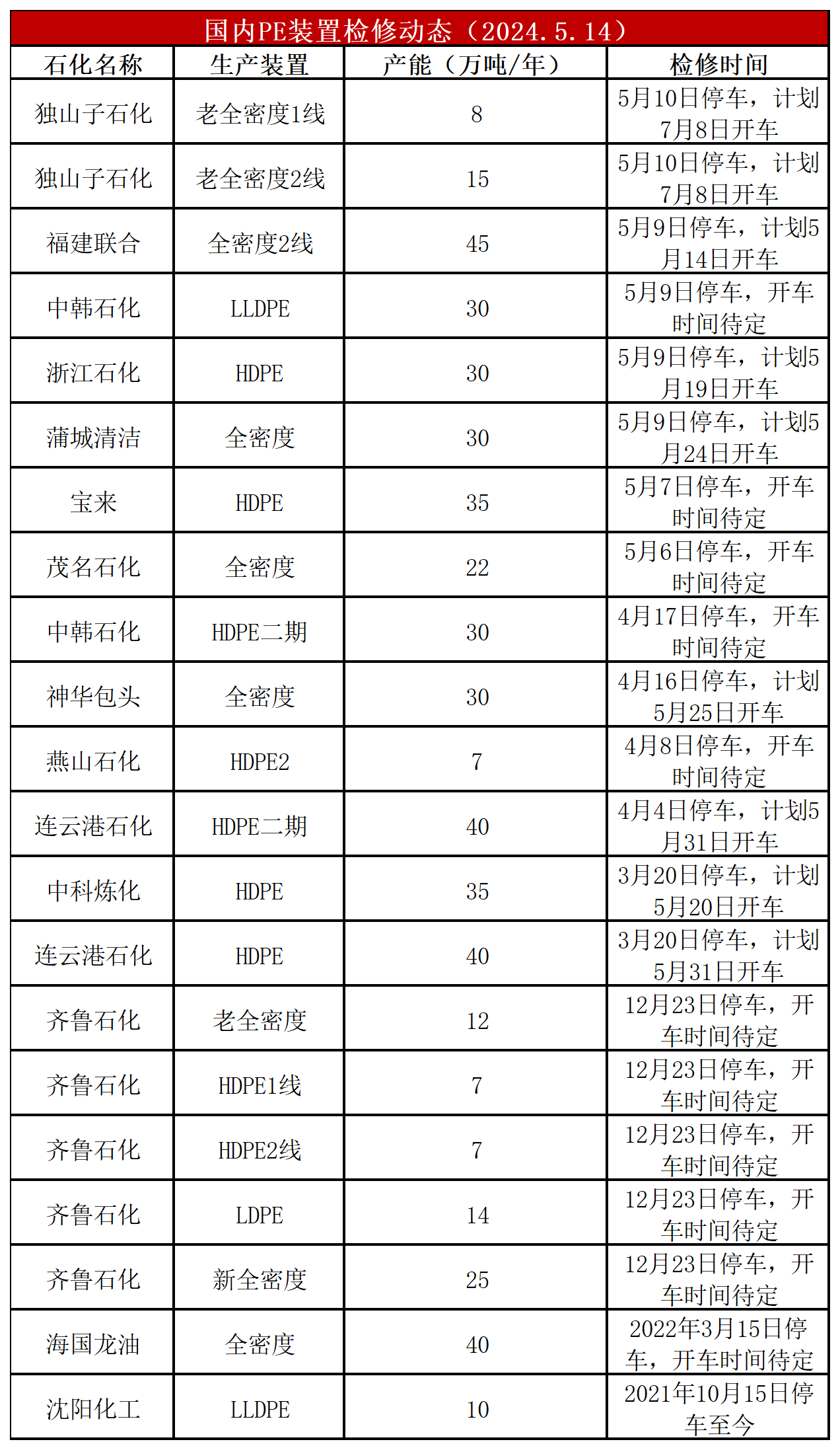 简评:PE装置兰州石化老全密度开车,开工负荷稳定在83%左右,比上周-4%,较去年同期-4%。PE装置浙石化全密度二期,上海金菲HDPE、独山子石化计划停车,PE开工负荷预计下跌。