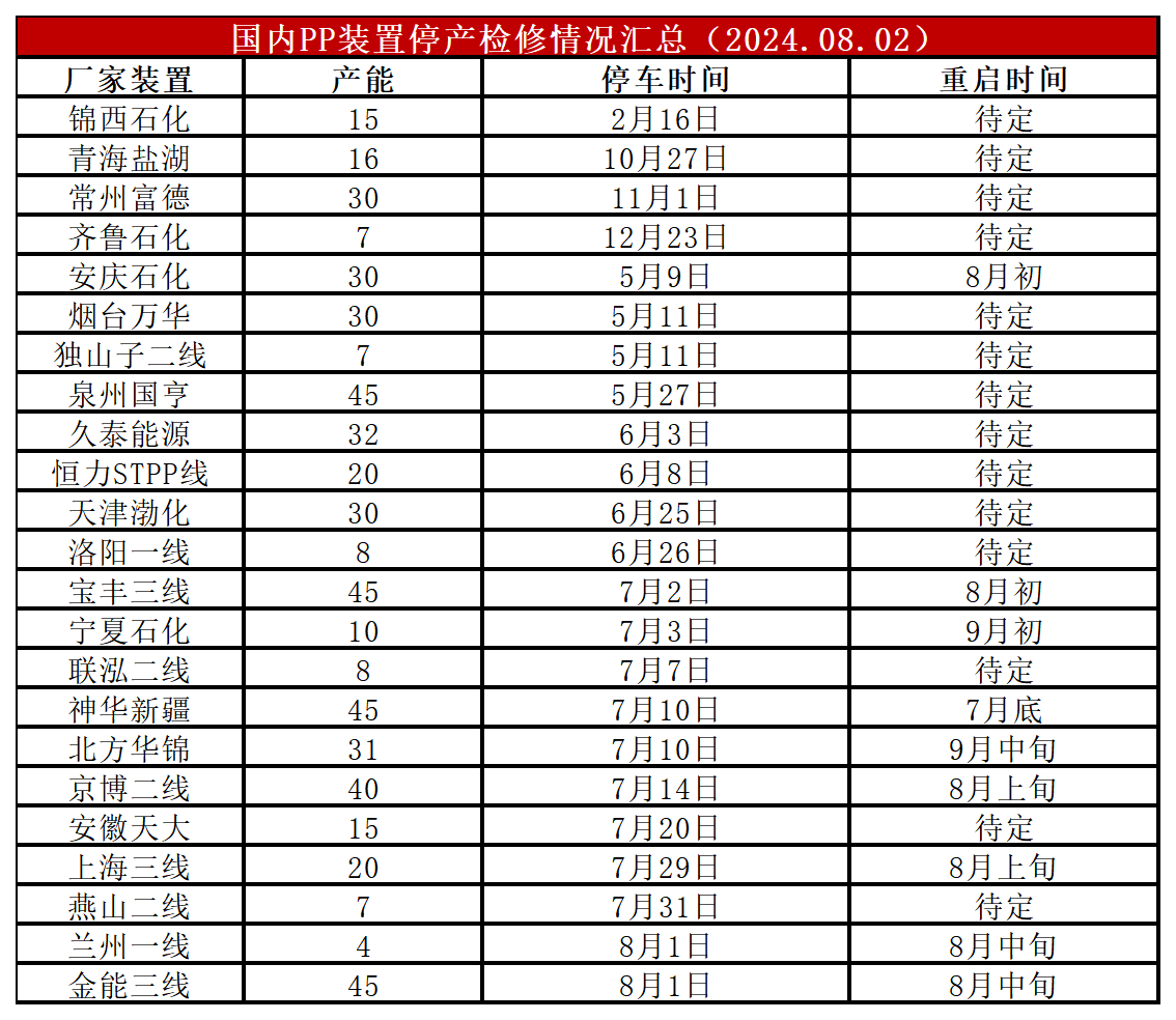 简评:近期个别装置停车检修,但是重启装置更多,PP开工率明显反弹,目前在85%,较上周增加3%,较上月同期高5%,较去年同期低1%。目前PP开工率较前期明显反弹,检修利好减弱,后期计划内检修明显减少且面临扩能预期,供应压力或逐渐增大。