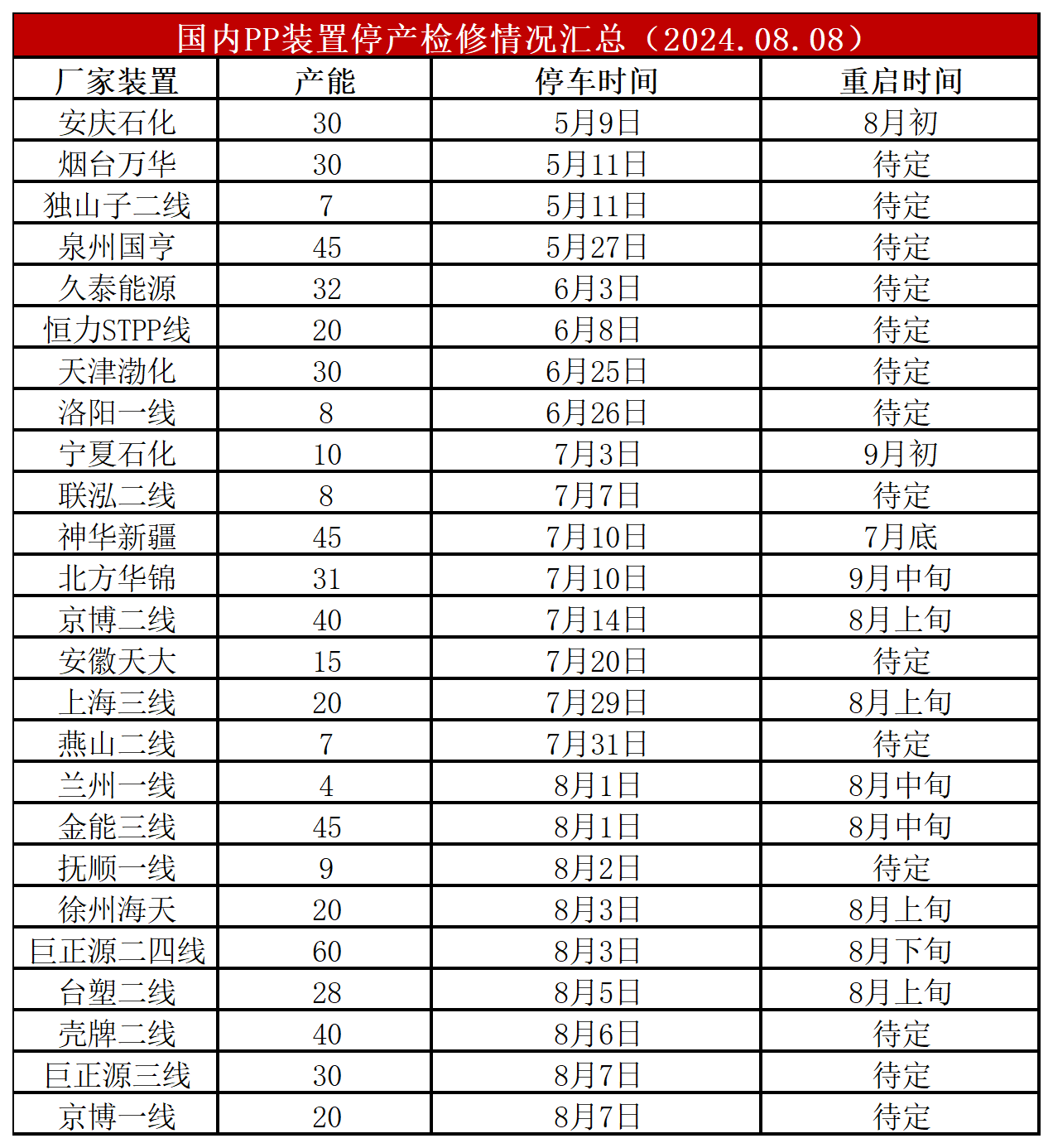 简评:京博一线,巨正源三线计划外停车,PP开工率继续下降,目前在81%,较上周下降4%,较上月同期高1%,较去年同期低6%。目前PP开工率较前期低点有所反弹,检修利好减弱,后期计划内检修明显减少且面临扩能预期,供应压力或逐渐增大。