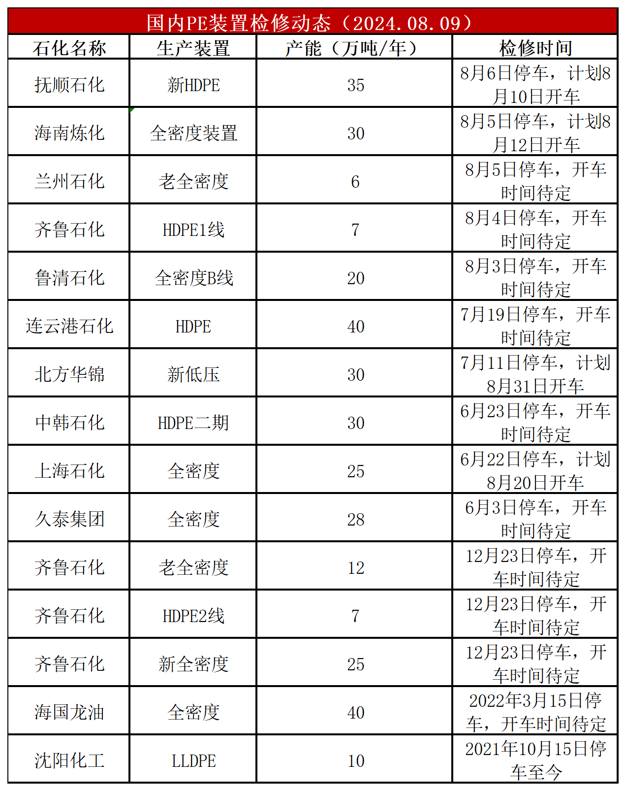 简评:PE装置大庆石化LDPE1线、独山子石化新全密度1线开车,开工负荷上涨至89%左右,比上周+2%,较去年同期-0%。PE 装置抚顺石化新HDPE计划开车,PE开工负荷预计走势偏强。