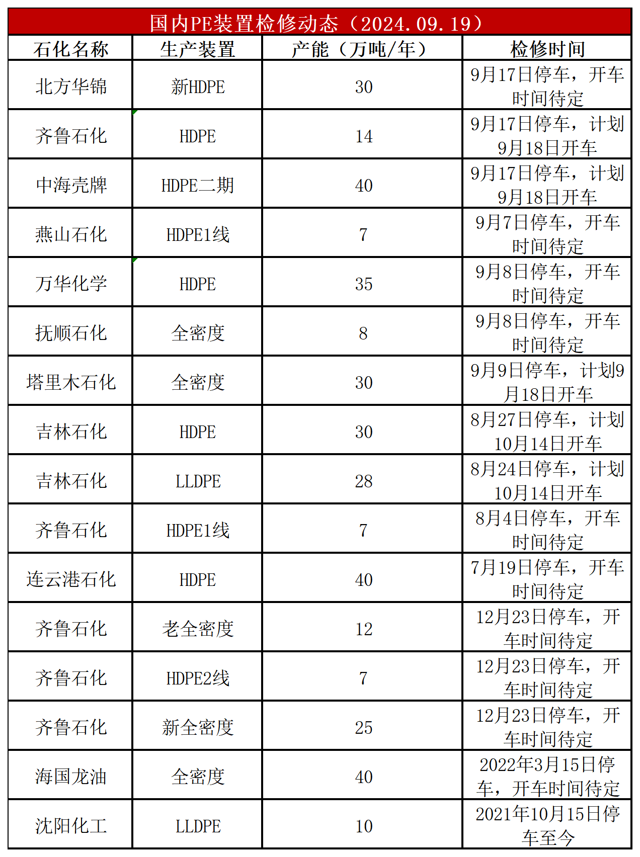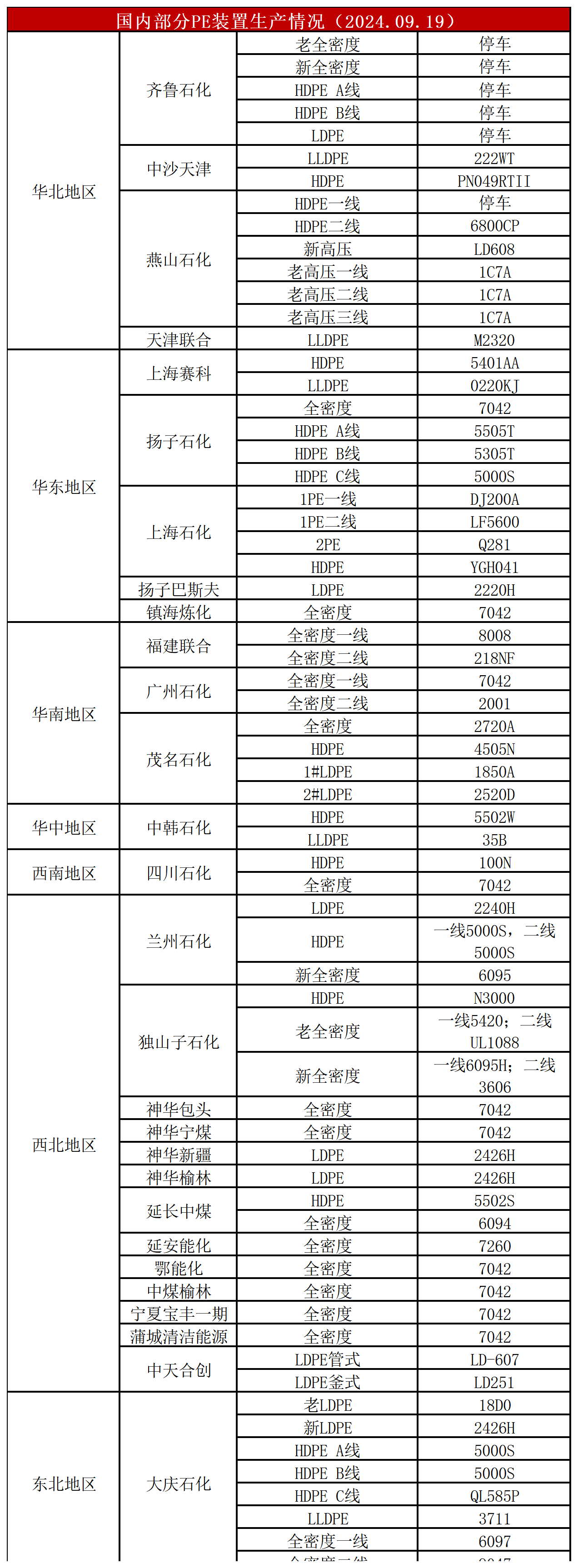 简评:PE装置中韩石化HDPE开车,北方华锦HDPE、齐鲁石化LDPE停车,开工负荷下降至90%左右,比上周+2%,较去年同期+1%。PE装扬子石化HDPE3线计划停车,齐鲁石化LDPE计划开车,PE开工负荷预计大稳小动。