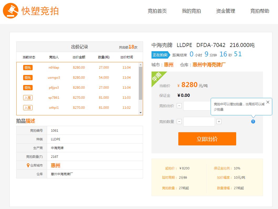 我们快塑竞拍活动的关注度一路走高!